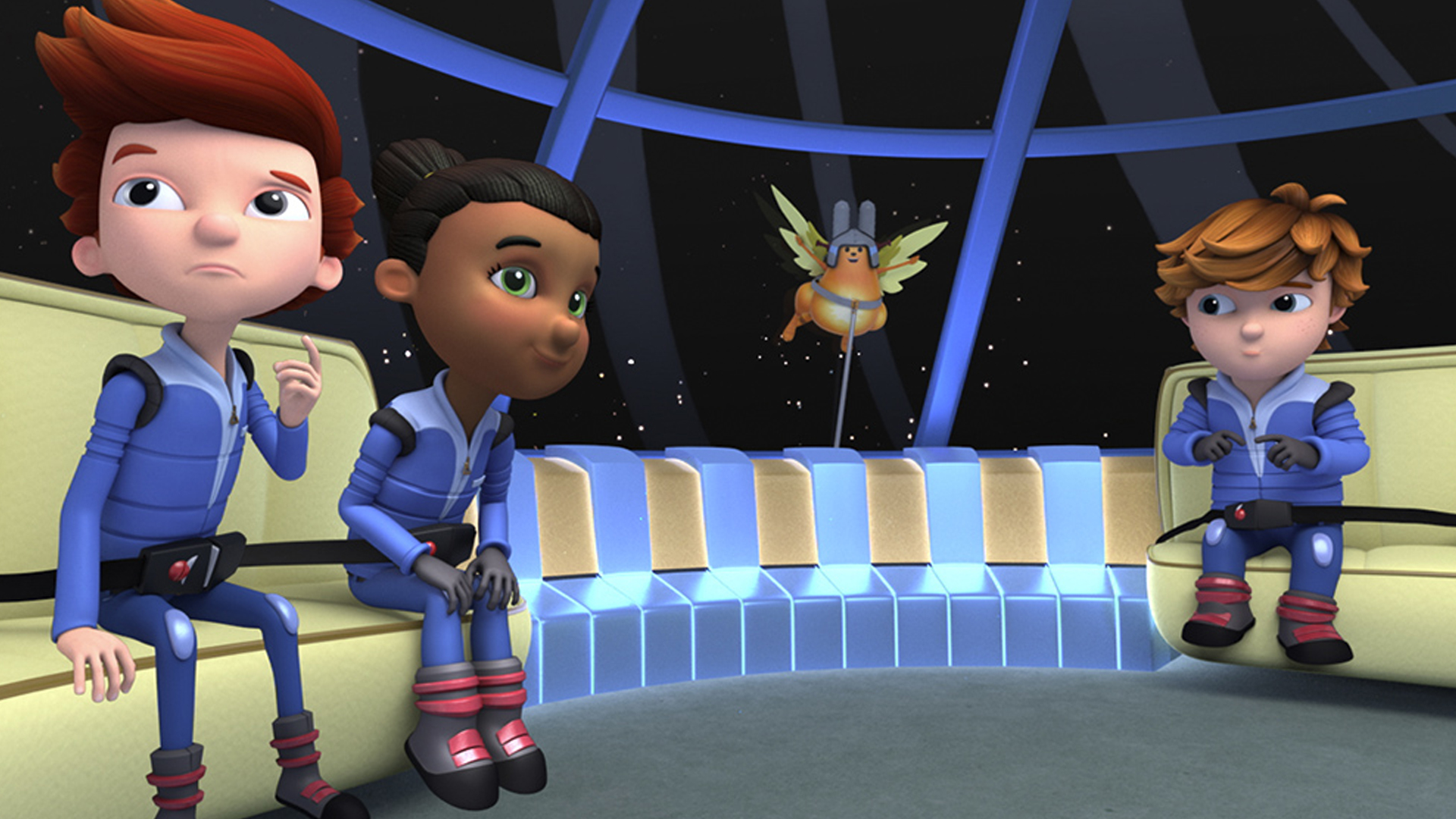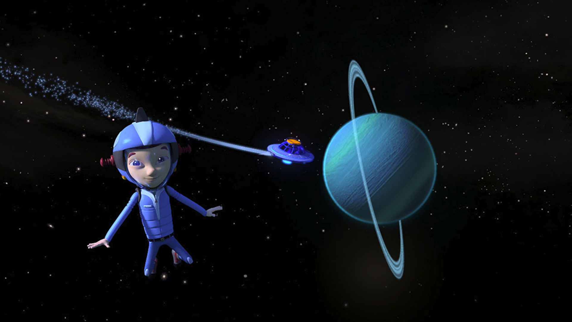 Ready Jet Go! follows two neighborhood kids: Sean, who has an all-consuming drive for science facts, and Sydney, who has a passion for science fiction and imagination. They both befriend the new kid on their street, Jet Propulsion, whose family members happen to be aliens! Together, they embark on great adventures, exploring the solar system, learning about space and science, but always back just in time for dinner!